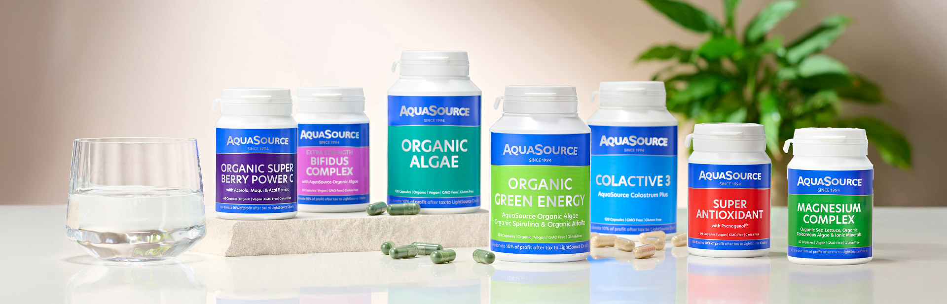 Recommended for anyone new to AquaSource nutritional supplements. The AquaSource Start Easy Programme is designed to safeguard levels of important enzymes and bacteria in the digestive system and includes AquaSource Organic Algae, thus supporting the body’s own inner cleansing mechanisms, and helping optimise nutritional intake for well-being and vitality.